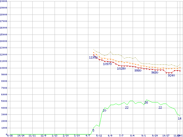 | 6L200M0 (200GB,8MB)の価格推移 | | | (2004年9月16日~2005年12月1日) |