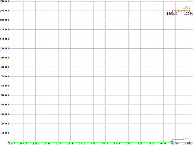 | デュアルコアXeon 2.80GHz (L2 2MB×2)の価格推移 | | | (2004年9月17日~2005年12月2日) |
