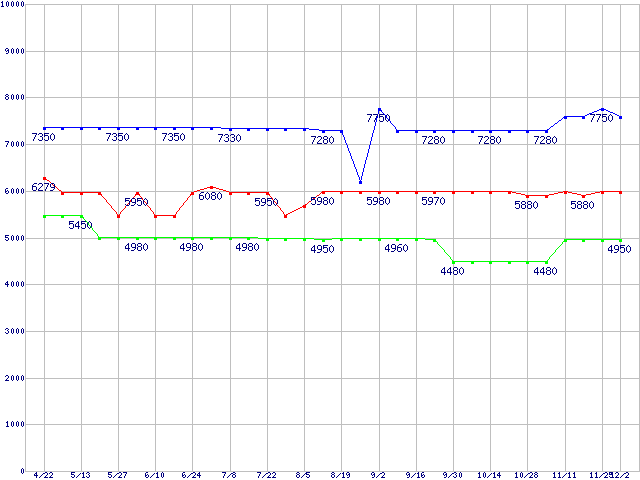 Socket A (FSB 266MHz,L2 256KB)の最安値推移