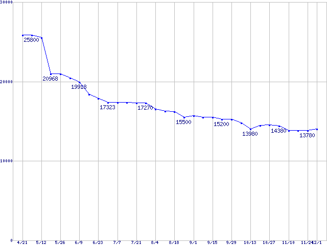 WD Raptor (10000rpm,Serial ATA/150,8MB)の最安値推移