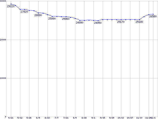 Deskstar T7K250 (7200rpm,Ultra ATA/133)の最安値推移