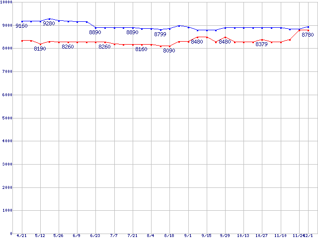 | Barracuda 7200.7 Plus (7200rpm,Ultra ATA/100,8MB,80GB/Platter)の最安値推移 | | | (2005年4月21日~2005年12月1日) |
