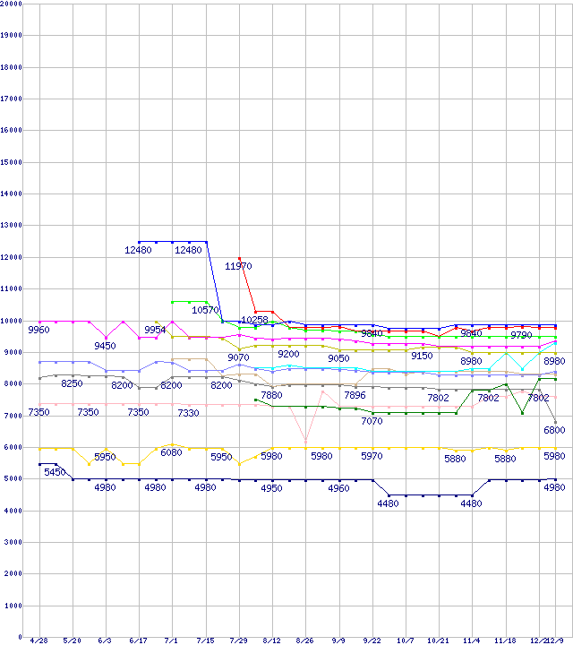 CPU主要製品(最安値1万円~2万円未満)の最安値推移