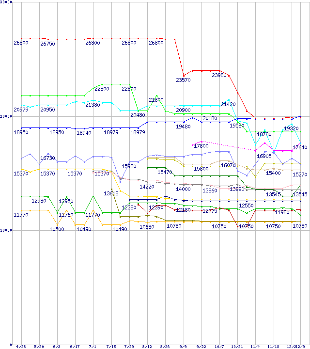 CPU主要製品(最安値1万円~2万円未満)の最安値推移