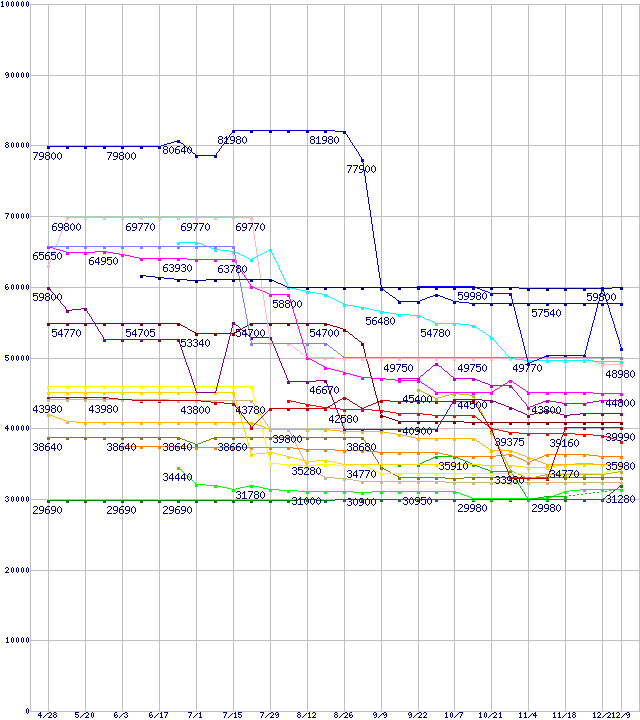 CPU主要製品(最安値6万円以上)の最安値推移