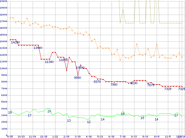 PC3200(DDR400) DDR SDRAM DIMM ECC対応 Registeredタイプの最安値推移