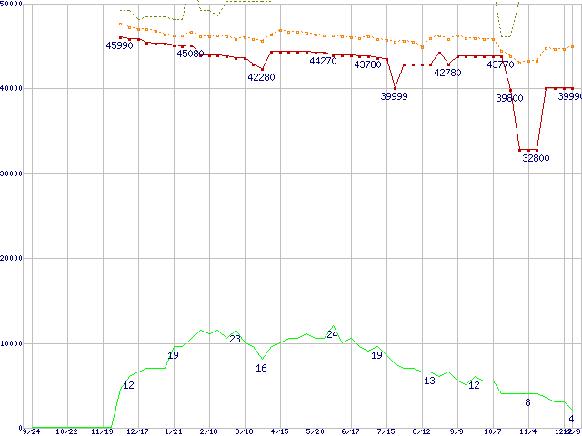 | Pentium 4 560J (3.60GHz)の価格推移 | | | (2004年9月24日~2005年12月9日) |