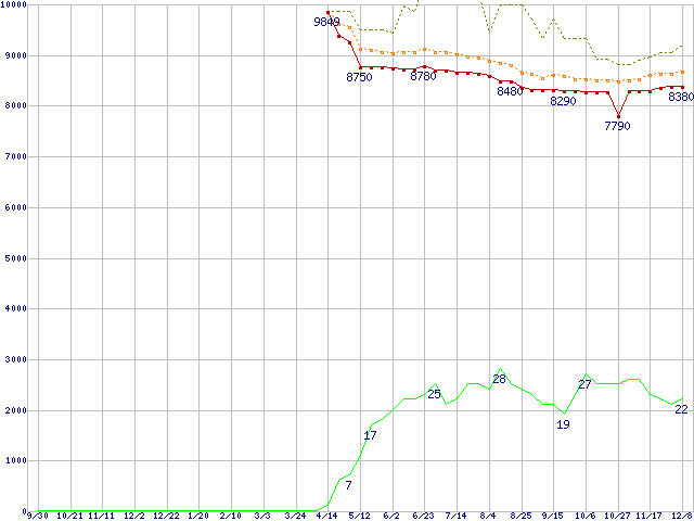 | 6L160P0 (160GB,8MB)の価格推移 | | | (2004年9月30日~2005年12月8日) |