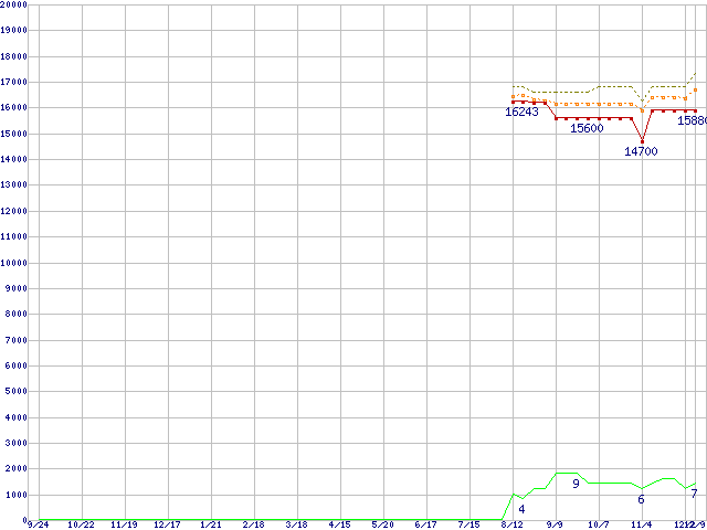 | Celeron M 380 (1.6GHz)の価格推移 | | | (2004年9月24日~2005年12月9日) |