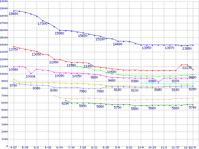 | DiamondMax 10 (7200rpm,Ultra ATA/133,RoHS指令準拠)の最安値推移 | | | (2005年4月27日~2005年12月8日) |