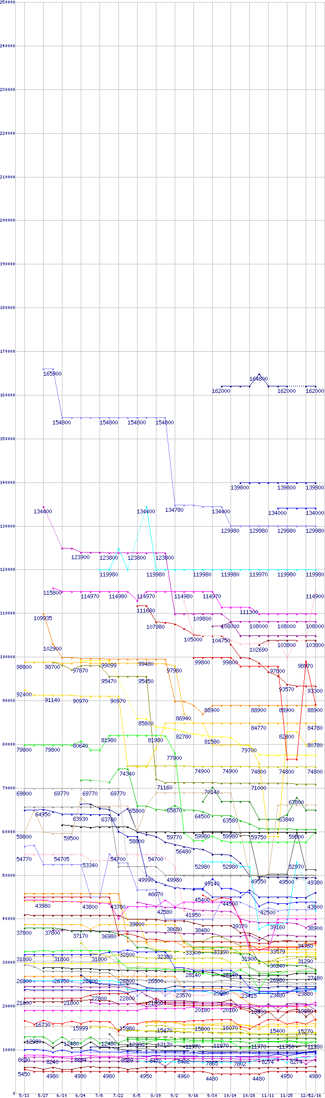 | CPU主要製品の最安値推移 | | | (2005年5月13日~2005年12月16日) |