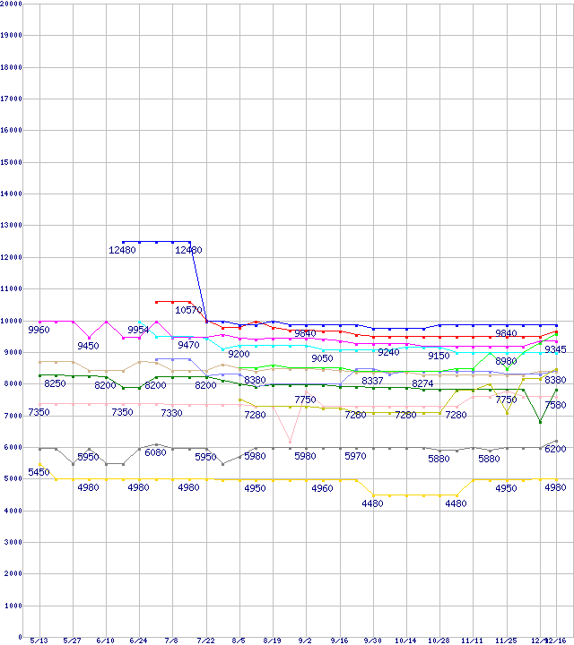 CPU主要製品(最安値1万円~2万円未満)の最安値推移
