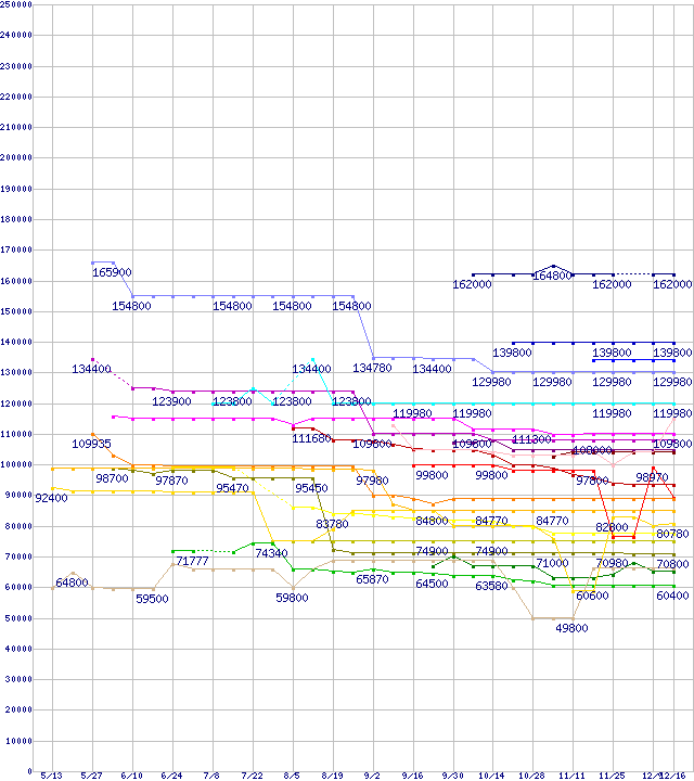 ※点線部は販売店が確認できなかった、または調査データがないことを示します