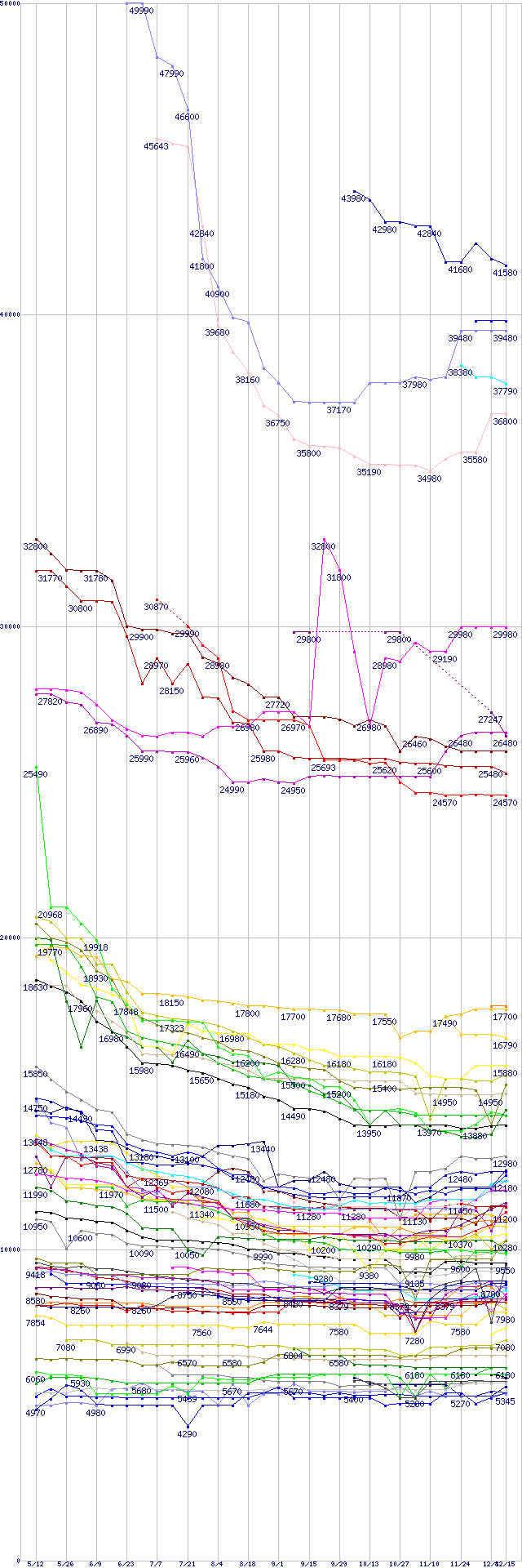 | HDD主要製品の最安値推移 | | | (2005年5月12日~2005年12月15日) |
