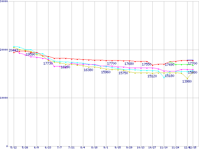 HDD主要製品(最安値1万5千円~2万円未満)の最安値推移