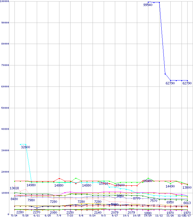 PC2-4200*(DDR2-533) DDR2 SDRAM DIMMの最安値推移