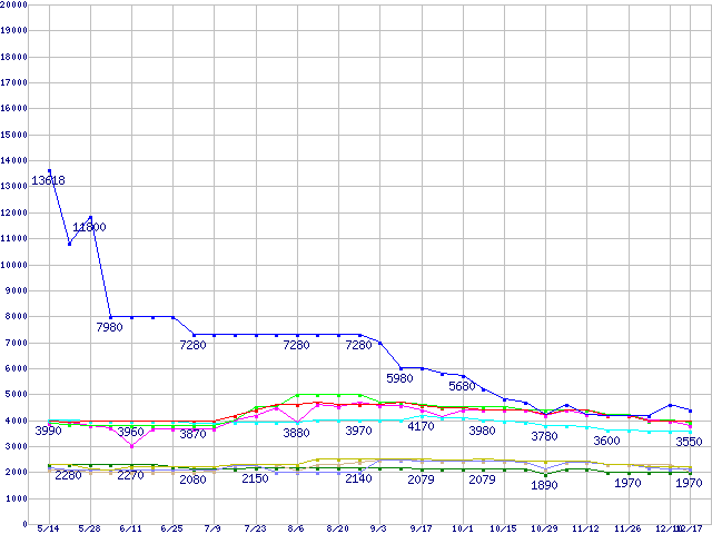メモリ主要製品(最安値5千円~1万円未満)の最安値推移