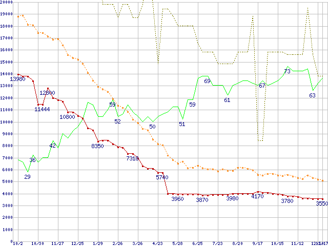 PC2-4200*(DDR2-533) DDR2 SDRAM DIMMの最安値推移