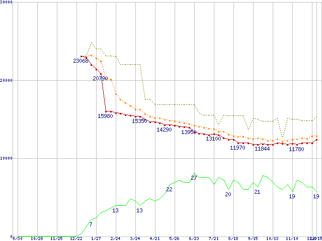 | ST3250823AS (250GB)の価格推移 | | | (2004年9月30日~2005年12月15日) |