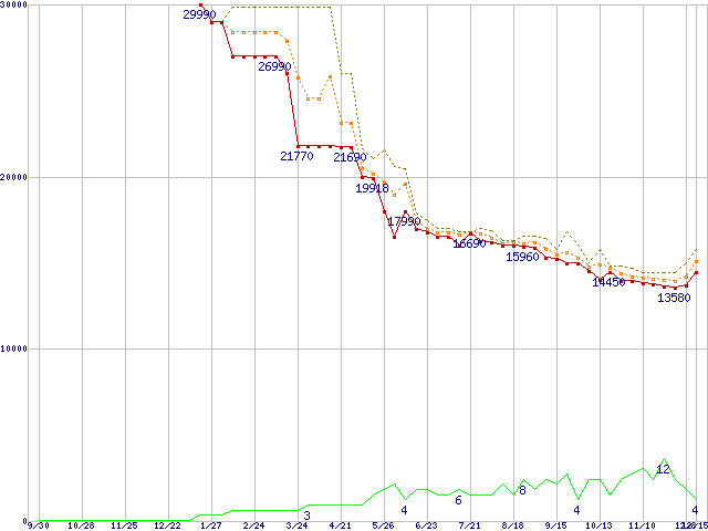 | WD3200JB (320GB)の価格推移 | | | (2004年9月30日~2005年12月15日) |