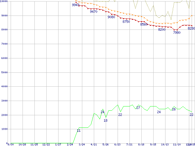 | HDT722516DLAT80 (160GB,8MB)の価格推移 | | | (2004年9月30日~2005年12月15日) |