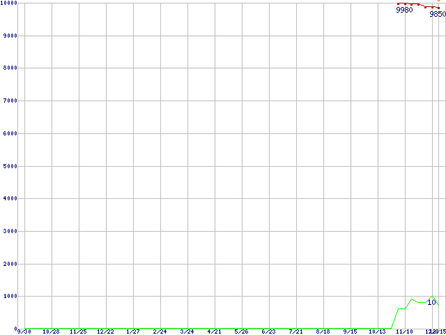 | HDT722525DLAT80 (200GB,8MB)の価格推移 | | | (2004年9月30日~2005年12月15日) |