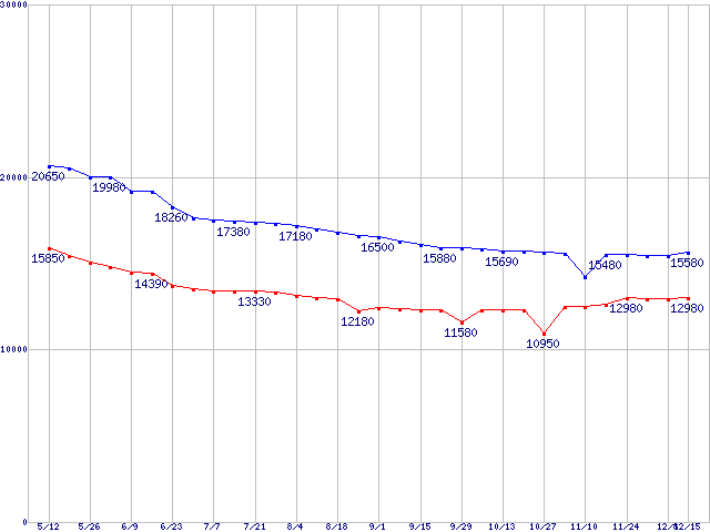 | MaXLine III (7200rpm,16MB,Serial ATA II Phase1,RoHS指令準拠)の最安値推移 | | | (2005年5月12日~2005年12月15日) |