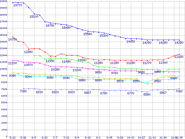 | DiamondMax 10 (7200rpm,Serial ATA II Phase1,RoHS指令準拠)の最安値推移 | | | (2005年5月12日~2005年12月15日) |