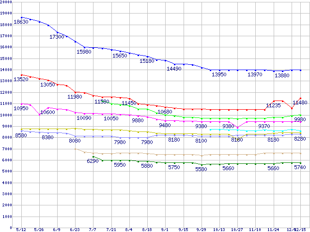 | DiamondMax 10 (7200rpm,Ultra ATA/133,RoHS指令準拠)の最安値推移 | | | (2005年5月12日~2005年12月15日) |