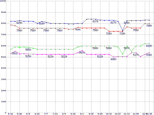 | Barracuda 7200.7 (7200rpm,Ultra ATA/100,2MB,80GB/Platter)の最安値推移 | | | (2005年5月12日~2005年12月15日) |