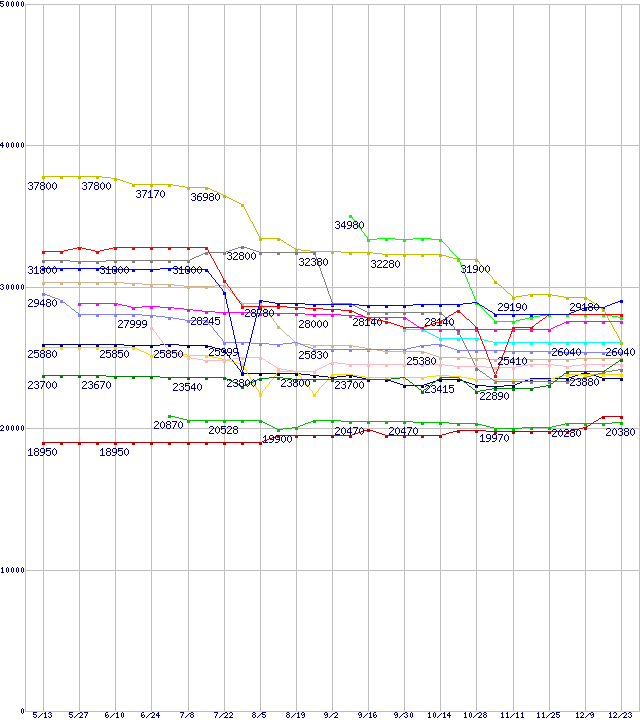 CPU主要製品(最安値2万円~3万円未満)の最安値推移