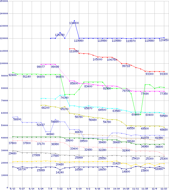 | Socket 939・FSB 1000MHzの最安値推移 | | | (2005年5月13日~2005年12月23日) |