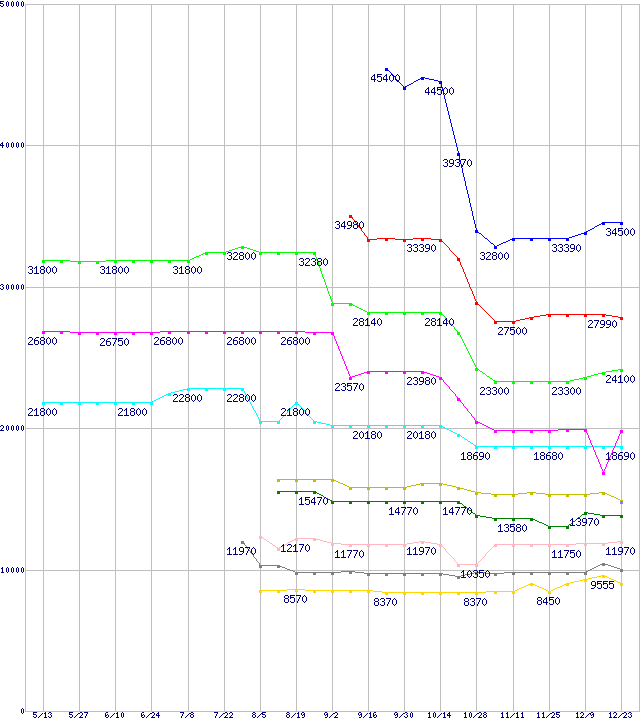 | Socket 754・FSB 800MHzの最安値推移 | | | (2005年5月13日~2005年12月23日) |