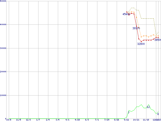 | Turion 64 MT-40 (2.2GHz,1MB) バルクの価格推移 | | | (2004年10月8日~2005年12月23日) |