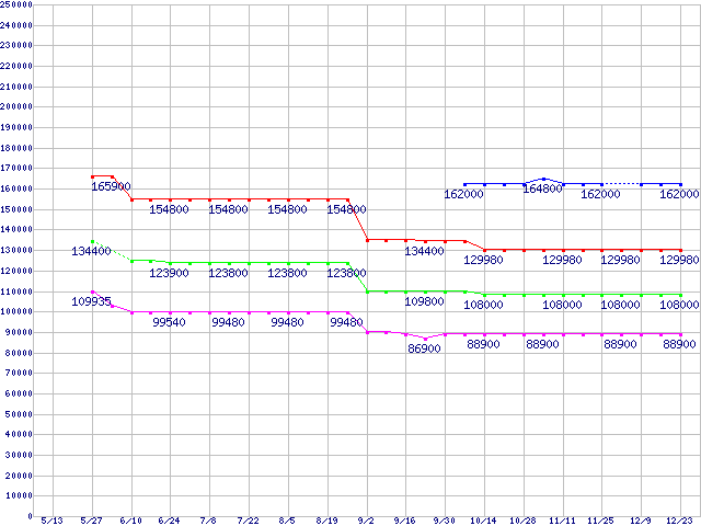 Socket 940 (FSB 1000MHz,L2 1MBx2,Dual Core)の最安値推移