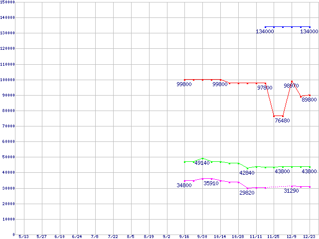 Socket 939 (FSB 1000MHz,L2 1MB)の最安値推移
