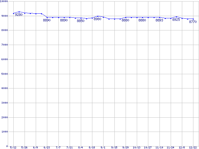 | Barracuda 7200.7 Plus (7200rpm,Ultra ATA/100,8MB,80GB/Platter)の最安値推移 | | | (2005年5月12日~2005年12月22日) |