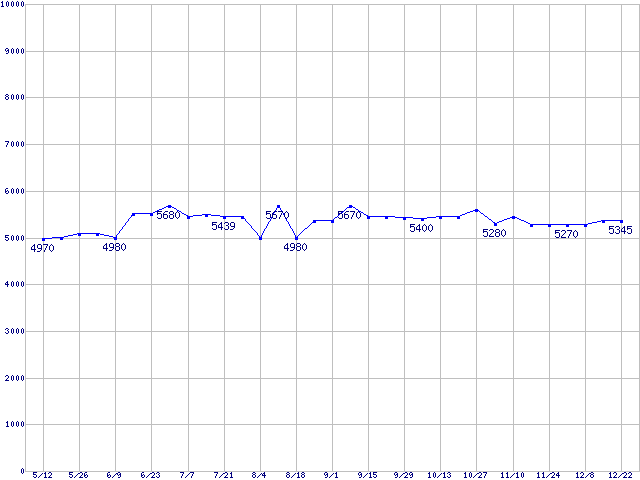 | Barracuda 5400.1 (5400rpm,Ultra ATA/100,2MB)の最安値推移 | | | (2005年5月12日~2005年12月22日) |