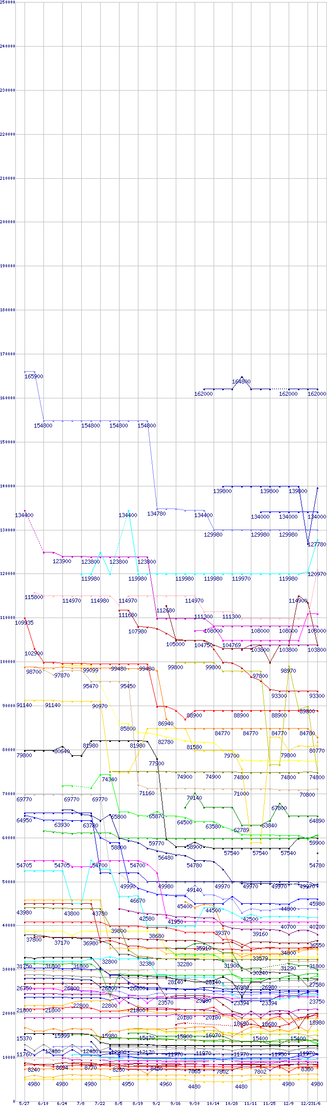 | CPU主要製品の最安値推移 | | | (2005年5月27日~2006年1月6日) |