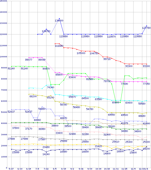 | Socket 939・FSB 1000MHzの最安値推移 | | | (2005年5月27日~2006年1月6日) |