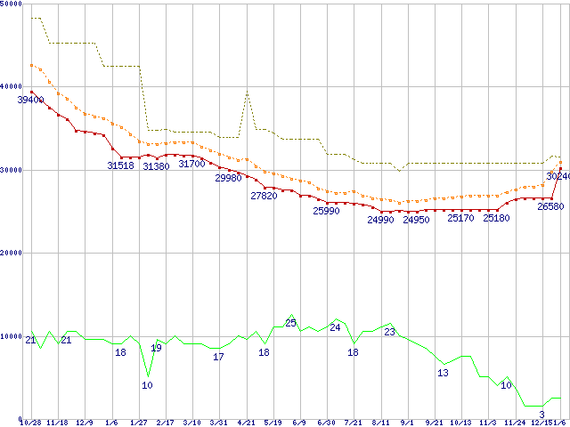 | HDS724040KLAT80 (400GB,8MB)の価格推移 | | | (2004年10月28日~2006年1月6日) |