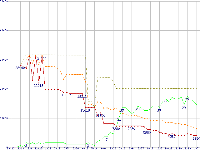 PC2-5300(DDR2-667) DDR2 SDRAM DIMMの最安値推移