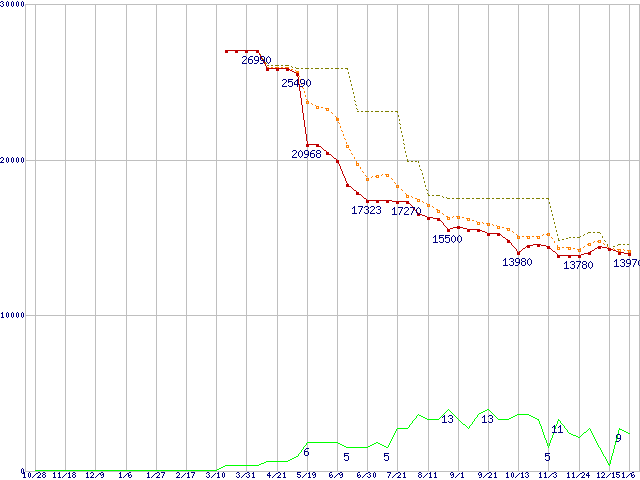 | WD3200JD (320GB)の価格推移 | | | (2004年10月28日~2006年1月6日) |
