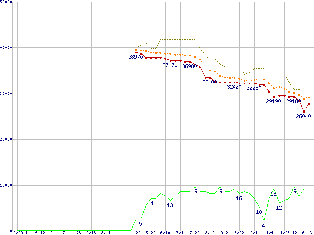 | Athlon 64 3700+ (2.2GHz,L2 1MB)の価格推移 | | | (2004年10月29日~2006年1月6日) |