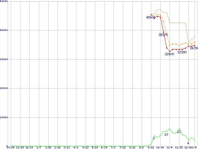 | Turion 64 MT-40 (2.2GHz,1MB) バルクの価格推移 | | | (2004年10月29日~2006年1月6日) |
