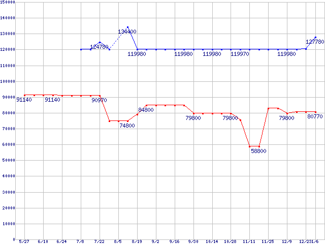 Socket 939 (FSB 1000MHz,Dual Core)の最安値推移
