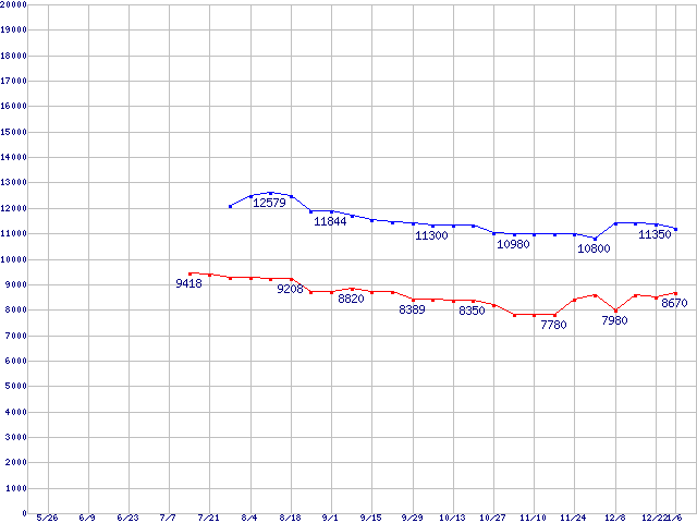 WD Caviar SE (7200rpm,Serial ATA II,8MB)の最安値推移