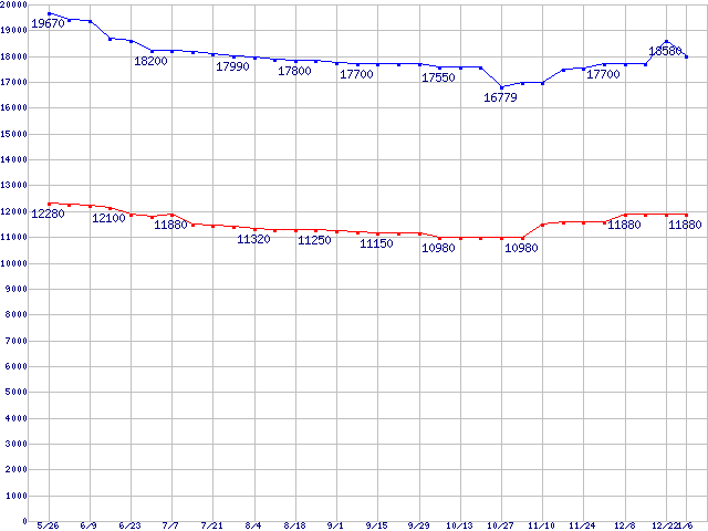WD Raptor (10000rpm,Serial ATA/150,8MB)の最安値推移