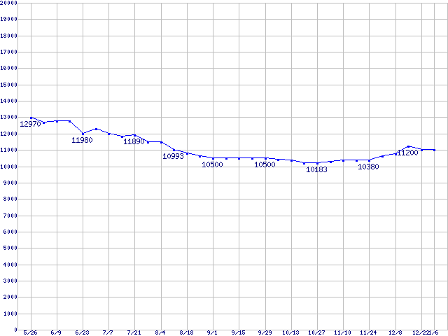 | WD Caviar[Special Edition] (7200rpm,Ultra ATA/100,8MB)の最安値推移 | | | (2005年5月26日~2006年1月6日) |