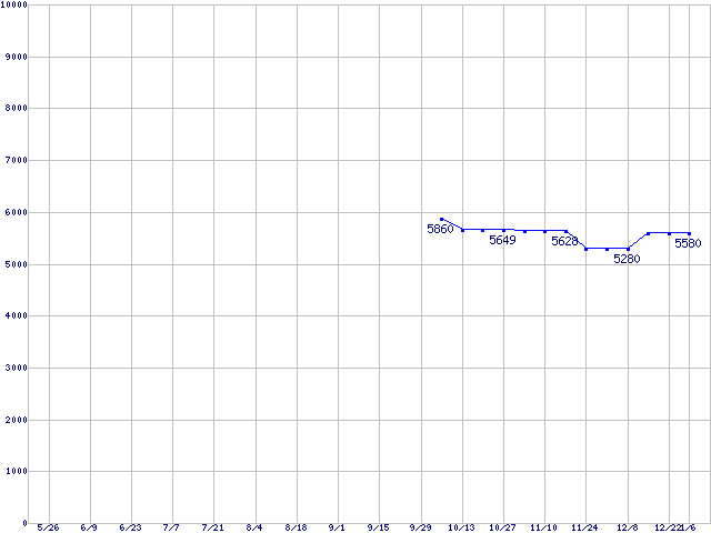 | DiamondMax Plus 8 (7200rpm,2MB,Ultra ATA/133)の最安値推移 | | | (2005年5月26日~2006年1月6日) |